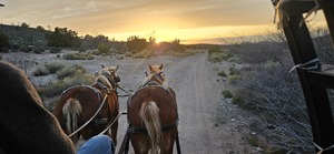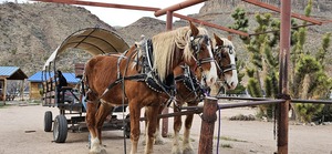 Step back in time on an authentic horse-drawn covered wagon ride along the historic Mormon Trail at Grand Canyon Western Ranch. Climb aboard a canvas-topped wagon pulled by two majestic Belgian Draught Horses, winding your way through a grove of Joshua Trees as your cowboy guide weaves tales of pioneer life, local Native wildlife, and the legendary outlaw history of this historic Ranch. Your journey brings you up to Sunset Hill, where you will enjoy our breathtaking encounter with the Ranch's Mountain Bison. These iconic giants once roamed the plains by the millions and now stand as living ties to the Old West.